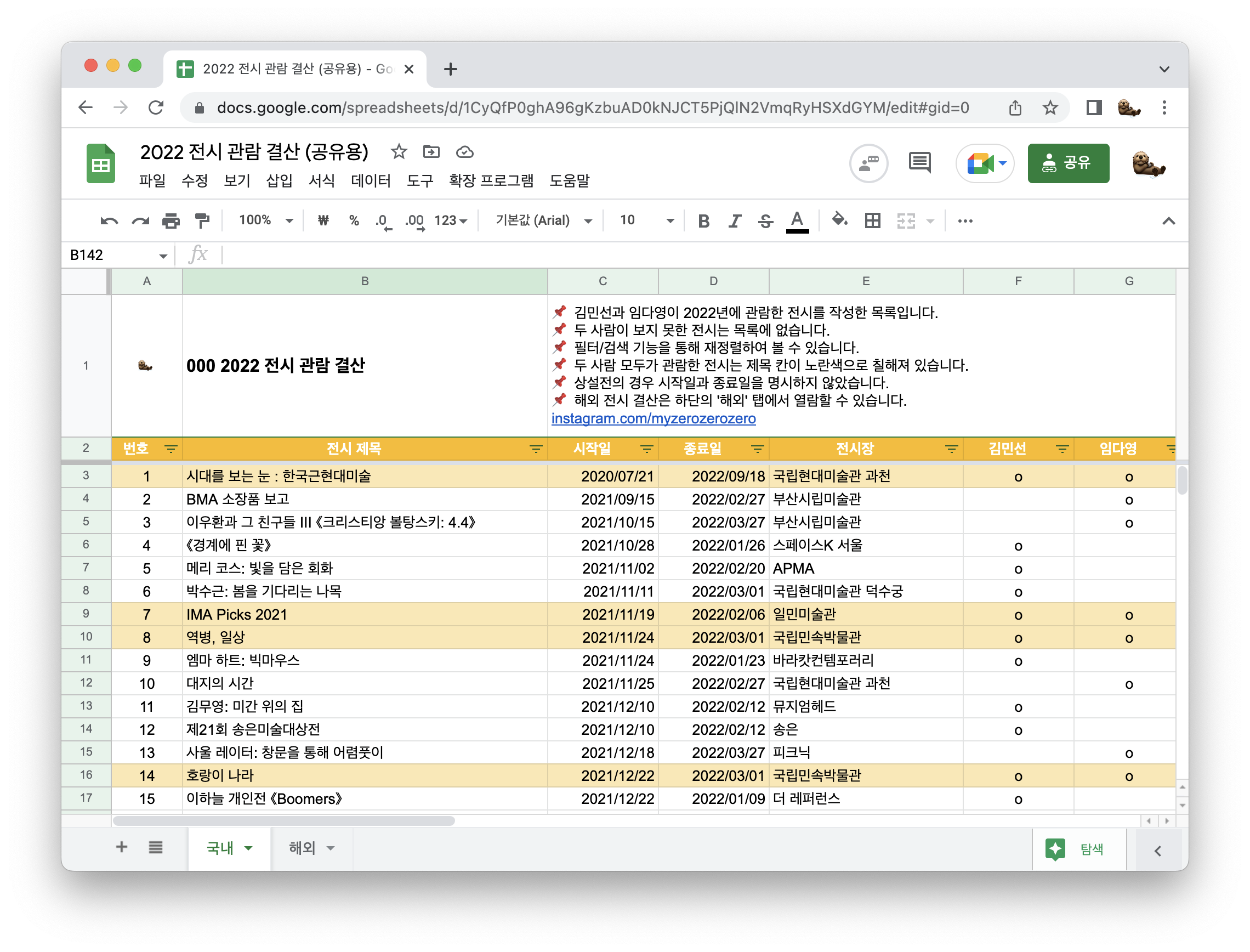 (다영) 저는 올해 전시보다는 공연을 더 많이 봤어요.. 그래도 정리해 보니 국립현대미술관, 국립중앙박물관, 리움, 일민미술관 등 규모가 큰 공간에 자주 갔네요. 한 달에 평균 두 번 전시장을 찾았고요.