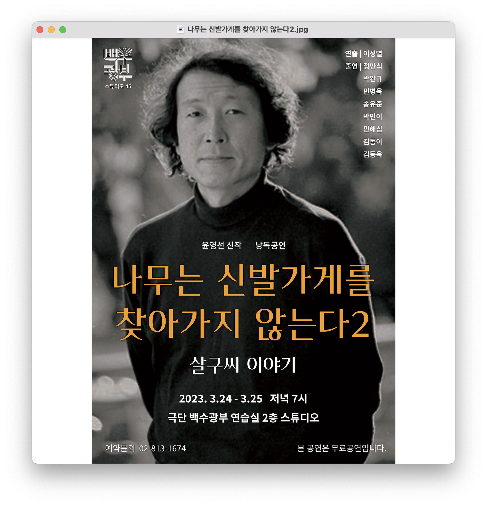 - 극단 백수광부 〈나무는 신발가게를 찾아가지 않는다 2〉 낭독공연