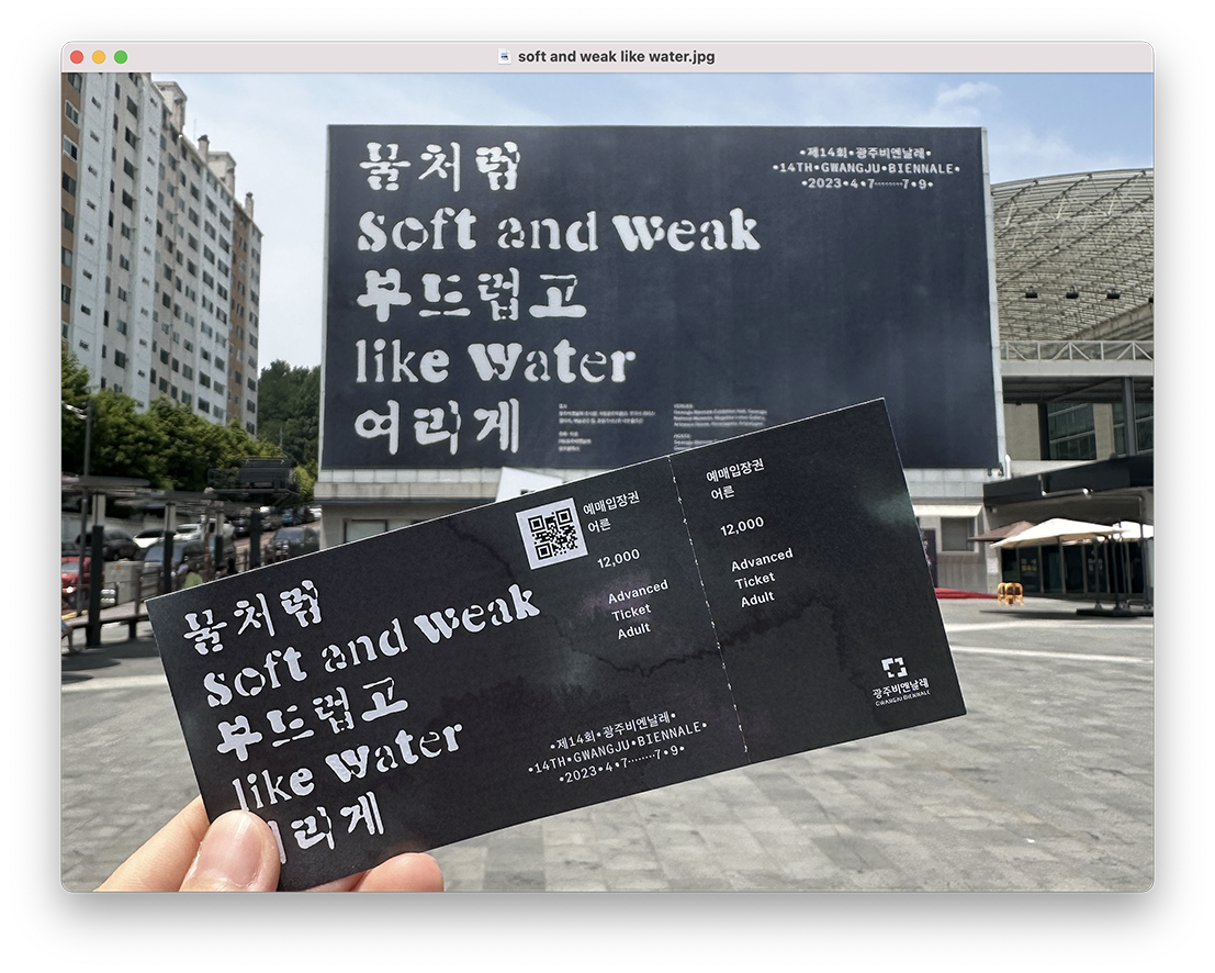 광주비엔날레 전시관 앞에서 하차한다. 장시간 전시를 봐야 하니, 미리 준비 입장권을 꺼내고 이어폰을 챙긴 뒤 백팩은 물품보관함에 맡겨 어깨를 가볍게 만든다. (하지만 전시를 보다 보면 배가 고프고, 핸드폰 배터리는 쭉쭉 사라진다. 🚨 혹시 이 글을 읽고 광주비엔날레를 보러 간다면 섣불리 모든 짐을 맡기지 마시길,,)