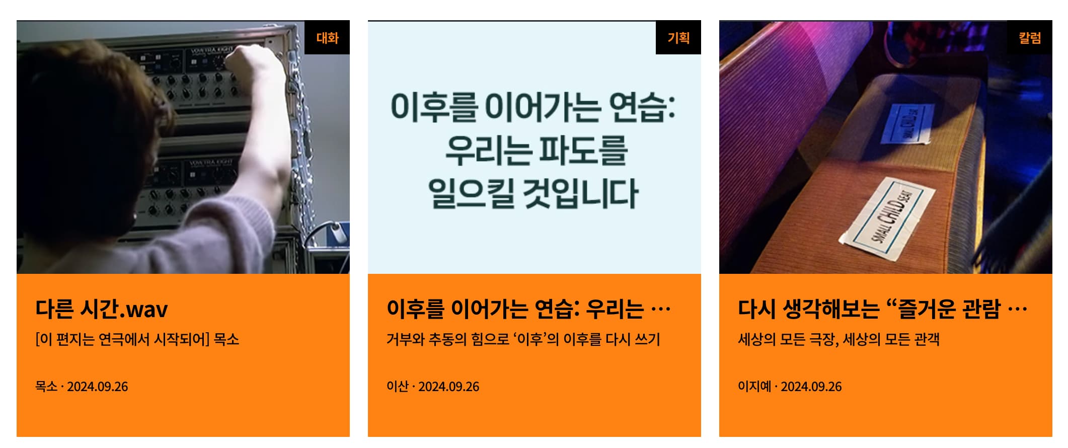 ‘여성주의 공연 큐레이션 메일링’을 표방하는 위클리 허시어터는 공연 소식과 리뷰를 전합니다. 연극이나 뮤지컬뿐만 아니라 클래식, 무용 등 공연예술계 전반에서 여성 작가, 연출가, 배우의 활동 궤적을 따라가죠. 어떤 작품을 볼지 고민될 때 참고하기 좋습니다.